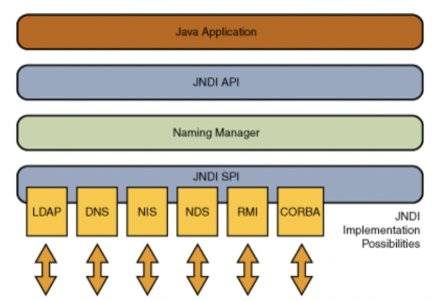 ## 概述 JNDI(Java Naming and Directory Interface,Java 命名与目录接口)是 Java EE 中用于统一管理和访问分布式资源的规范,它通过 “名称 - 资源” 映射机制,让应用程序能通过名称快速定位并使用资源(如数据库连接池、远程对象、消息队列等),无需硬编码资源的具体位置,是分布式系统中资源解耦的核心技术。 在分布式系统中,资源(如数据库、远程服务)的位置可能动态变化(如服务器迁移、端口调整),直接在代码中写死资源地址会导致维护成本极高。 JNDI底层支持RMI远程对象,RMI注册的服务可以通过JNDI接口来访问和调用。 JNDI支持多种命名和目录提供程序(Naming and Directory Providers),RMI注册表服务提供程序(RMI Registry Service Provider)允许通过JNDI应用接口对RMI中注册的远程对象进行访问操作。 将RMI服务绑定到JNDI的一个好处是更加透明、统一和松散耦合,RMI客户端直接通过URL来定位一个远程对象,而且该RMI服务可以和包含人员,组织和网络资源等信息的企业目录链接在一起。  > JNDI 的核心解决思路是: - 引入 “命名服务” 或 “目录服务” 作为中间层,负责维护 “资源名称” 与 “资源实际位置 / 引用” 的映射(称为 “绑定”); - 应用程序只需通过 JNDI API 查询 “名称”,即可获取资源,完全屏蔽资源的物理位置细节。 简单说:JNDI 是分布式系统的 “资源导航系统”,通过名称就能找到资源的 “坐标”。 ## 核心组件 | 概念 / 组件 | 描述 | | ----------------------------- | ------------------------------------------------------------ | | 命名服务(Naming Service) | 基础功能,提供 “名称 - 对象” 的映射(如 RMI Registry、DNS),支持通过名称查找对象。名称结构类似文件系统的 “路径”(如java:comp/env/jdbc/mydb)。 | | 目录服务(Directory Service) | 命名服务的扩展,除了 “名称 - 对象” 映射,还允许对象关联属性(如 LDAP 服务中,用户对象可关联邮箱、部门等属性),支持基于属性的查询。 | | Context(上下文) | JNDI 操作的核心接口,代表命名 / 目录服务中的一个 “命名空间节点”(类似文件系统的目录),提供资源的绑定(bind)、查找(lookup)、解绑(unbind)等核心方法。最常用的是InitialContext(初始上下文,JNDI 操作的入口)。 | | Binding(绑定) | “名称” 与 “资源对象” 的映射关系(如将名称"rmi://localhost:1099/helloService"绑定到一个 RMI 远程对象)。 | | Reference(引用) | 当资源对象不在本地时,JNDI 返回的 “间接引用”,包含对象的类名、工厂类(用于创建对象的类)、工厂类位置(如 URL)等信息。客户端通过 Reference 可加载并实例化目标对象。 | ## 工作流程 JNDI 的使用流程可概括为 “服务端绑定资源” 和 “客户端查找资源” 两步。 ### 服务端 服务端绑定资源到命名服务中: - 启动命名服务(如:RMI Registry、LDAP 服务器); - 创建资源对象(如:数据库资源池、RMI远程对象); - 通过Context.bind(String name, Object obj)将资源与名称绑定(如"jdbc/mydb"绑定到连接池)。 ### 客户端 客户端通过名称查找资源: - 配置InitialContext参数(指定命名服务类型和地址,如rmi://localhost:1099); - 创建InitialContext实例,调用lookup(String name)传入名称,获取资源对象; - 使用资源对象(如调用远程方法、获取数据库连接)。 ## 代码示例 通过 JNDI 访问 RMI 远程对象。 ### 服务端 绑定 RMI 远程对象到 JNDI ```java import java.rmi.registry.LocateRegistry; import java.rmi.registry.Registry; import javax.naming.Context; import javax.naming.InitialContext; import java.util.Hashtable; // 远程接口和实现类定义(同RMI示例) interface HelloService extends java.rmi.Remote { String sayHello() throws java.rmi.RemoteException; } class HelloServiceImpl extends java.rmi.server.UnicastRemoteObject implements HelloService { protected HelloServiceImpl() throws java.rmi.RemoteException {} @Override public String sayHello() { return "Hello JNDI"; } } public class JndiServer { public static void main(String[] args) throws Exception { // 启动RMI Registry(作为命名服务,端口1099) LocateRegistry.createRegistry(1099); // 创建远程对象 HelloService service = new HelloServiceImpl(); // 配置JNDI初始上下文(指定RMI命名服务) Hashtable<String, String> env = new Hashtable<>(); env.put(Context.INITIAL_CONTEXT_FACTORY, "com.sun.jndi.rmi.registry.RegistryContextFactory"); env.put(Context.PROVIDER_URL, "rmi://localhost:1099"); // 绑定对象到名称"helloService" Context ctx = new InitialContext(env); ctx.bind("helloService", service); System.out.println("服务绑定完成:名称=helloService"); } } ``` ### 客户端 通过 JNDI 查找并调用。 ```java import javax.naming.Context; import javax.naming.InitialContext; import java.util.Hashtable; public class JndiClient { public static void main(String[] args) throws Exception { // 配置JNDI初始上下文(与服务端一致) Hashtable<String, String> env = new Hashtable<>(); env.put(Context.INITIAL_CONTEXT_FACTORY, "com.sun.jndi.rmi.registry.RegistryContextFactory"); env.put(Context.PROVIDER_URL, "rmi://localhost:1099"); // 查找名称"helloService"对应的远程对象 Context ctx = new InitialContext(env); HelloService service = (HelloService) ctx.lookup("helloService"); // 调用远程方法 System.out.println(service.sayHello()); // 输出:Hello JNDI } } ```